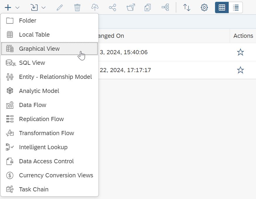 Click on the tab “Views” and here on the “+” Button to open the dropdown menu. Click on “Graphical View”.