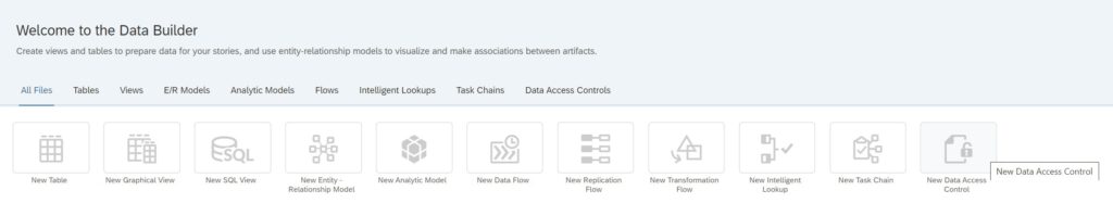 Finally, we are ready to create the DAC itself. In the Data Builder of Sales_Demo space, we click on “New Data Access Control”.
