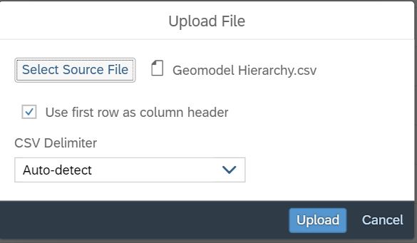 Now that we have created the hierarchy, we will again move through the well-known steps of creating a table in Admin/Permission space, populating it from a .csv file and sharing it to the IT-Space.