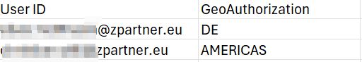 The first four lines belong to one User-ID, the following four to a second user. Both are authorized for the same values.