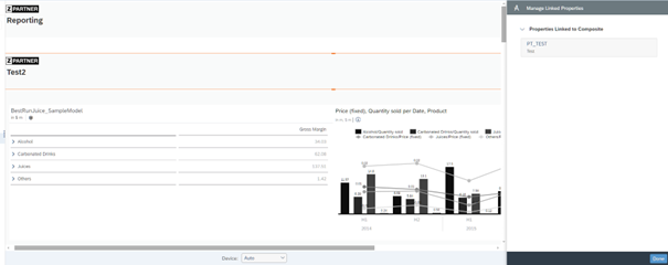 We mange property PT_TEST by right click and “Manage Linked Properties” and set the text for the Header at design time to “ “Header 2 Reporting”.