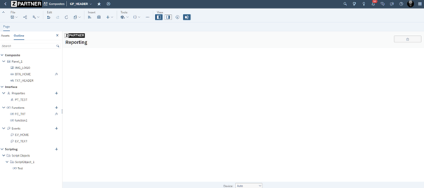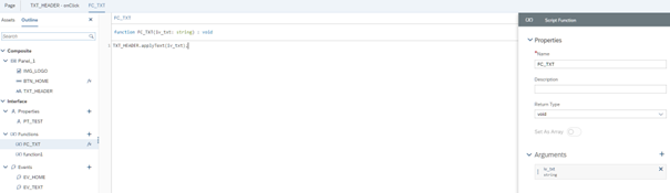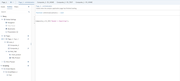 1. Header 1 is controlled via a script using a function (FC_TXT) from the composite to change its text.