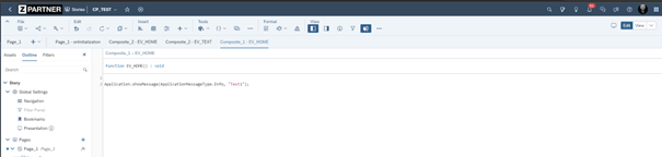 We interact with composites in story by reacting on event EV_HOME by providing a short message.