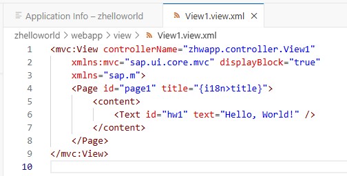 view1.view.xml: This XML file defines the UI layout of a specific view in our Fiori app.