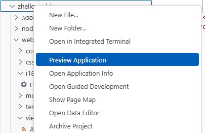 Once the view file is updated, you can preview and test the app by right-clicking the project and selecting “Preview Application”.