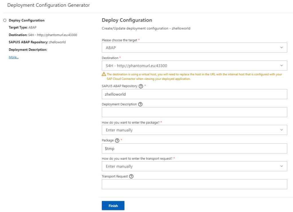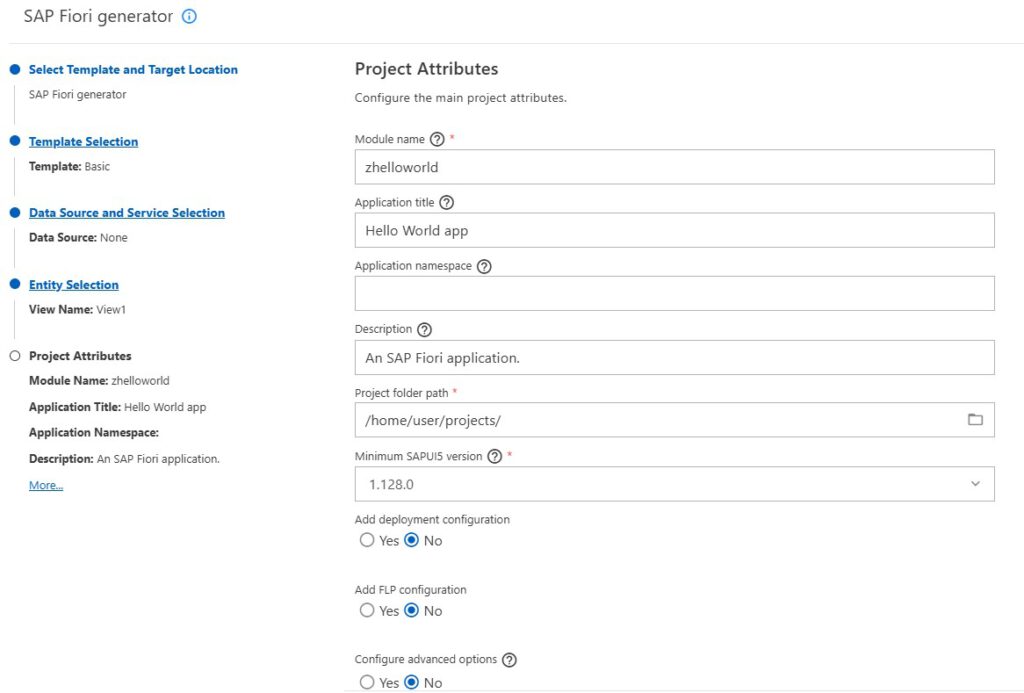 Finally define the project name, the project folder and the application title. As we anyhow must create a deployment configuration later, we will skip this point here: