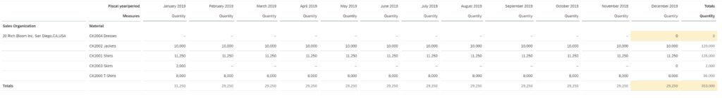 - As a result of unique key and helper table, all possible combinations are created – the value for the new record depends on the maintenance of the parameter VALUE – if nothing was defined, a zero record will be created