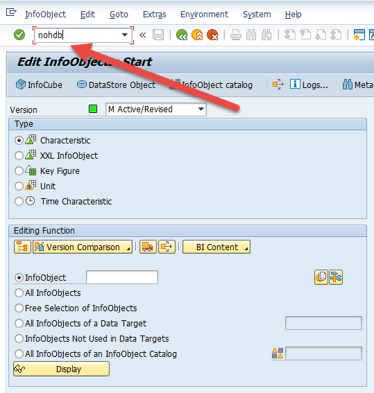 - Enter “nohdb” into the OK Code field as per the following screenshot and press enter