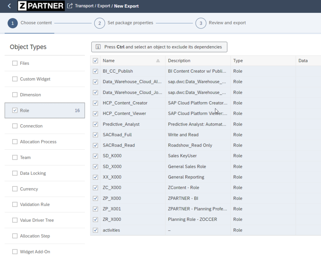 On the Content Network Storage page, you have the option to export all roles to a package file.