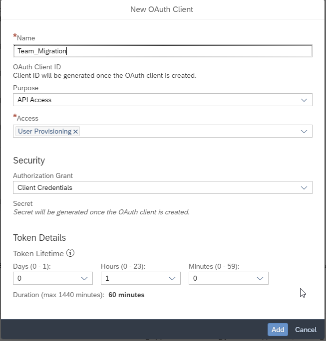 Step 1: Create an OAuth Client ( necessary in both tenants )