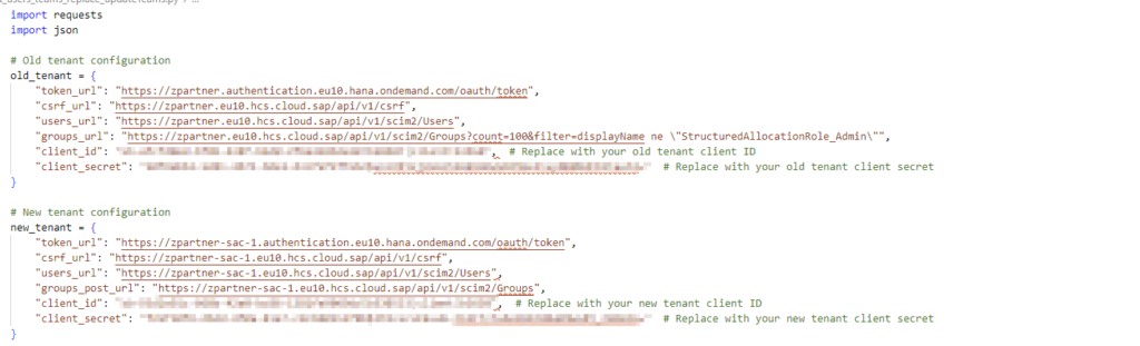 Modify the script by replacing placeholder values with your tenant’s specific URLs: