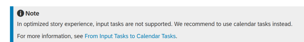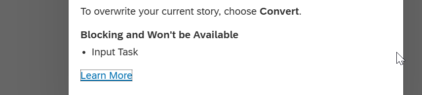 During the conversion process, there may be cases where Story 2.0 does not support certain features from the classic version. One example of this limitation is the „Input Task“ functionality, which is not fully retained after migration.