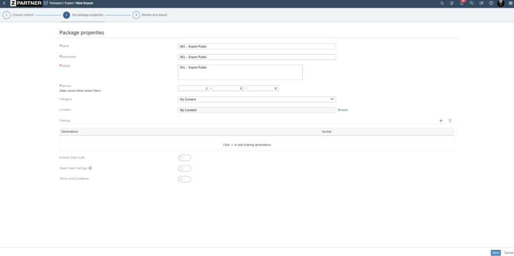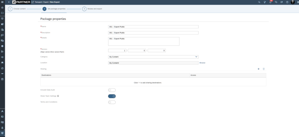 Luckily, we were able to use the Content Network and attempted to create a package containing all objects from the Public Folder (except for connections, which were already transported).