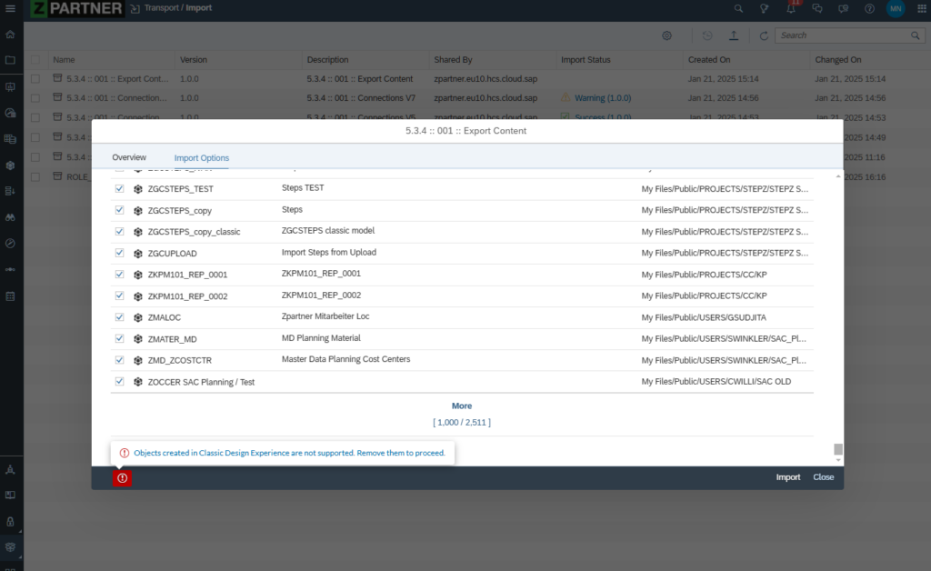 However, we encountered several issues when importing, particularly with native models. To resolve this, we identified problematic objects, adjusted them in the source system, and transported them separately.