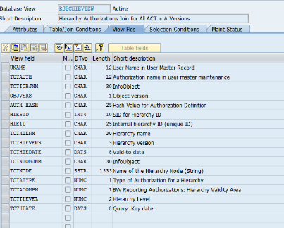 Old or Pre BW 7.4 Database-Tables for Hierarchy Entries within Authorizations