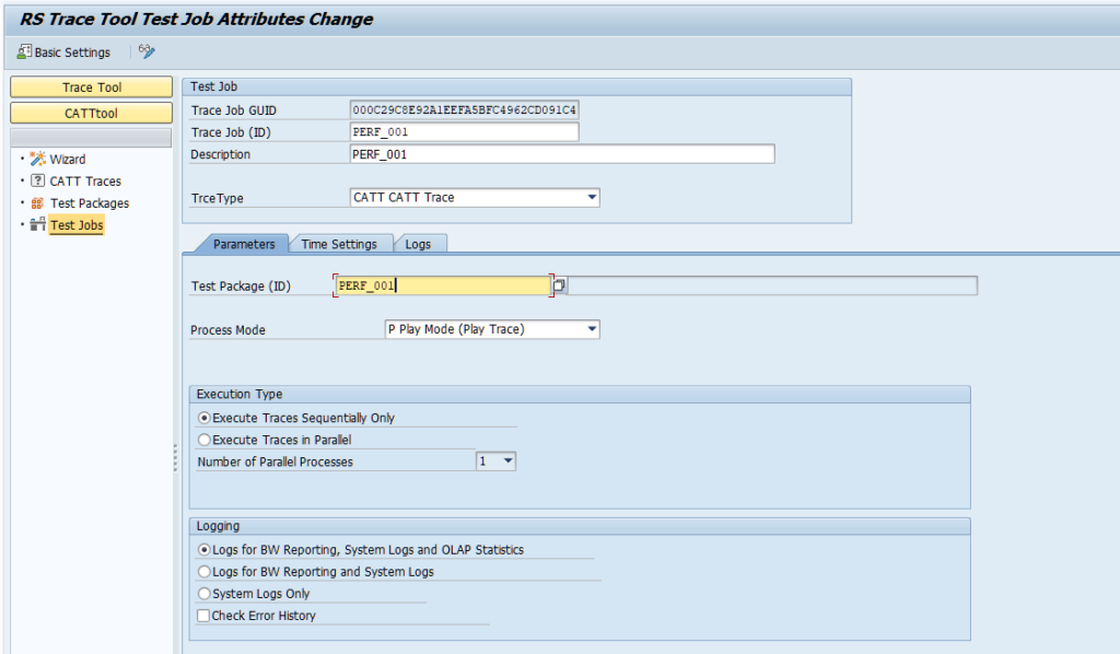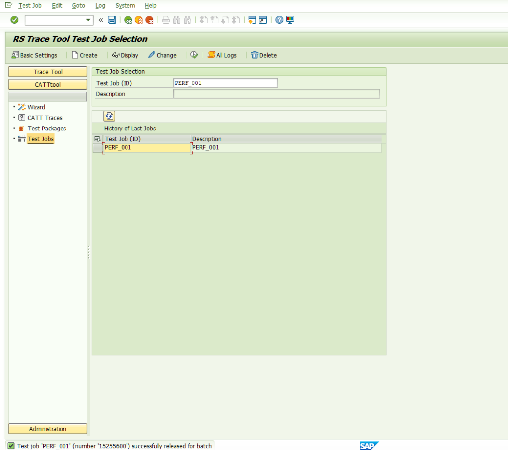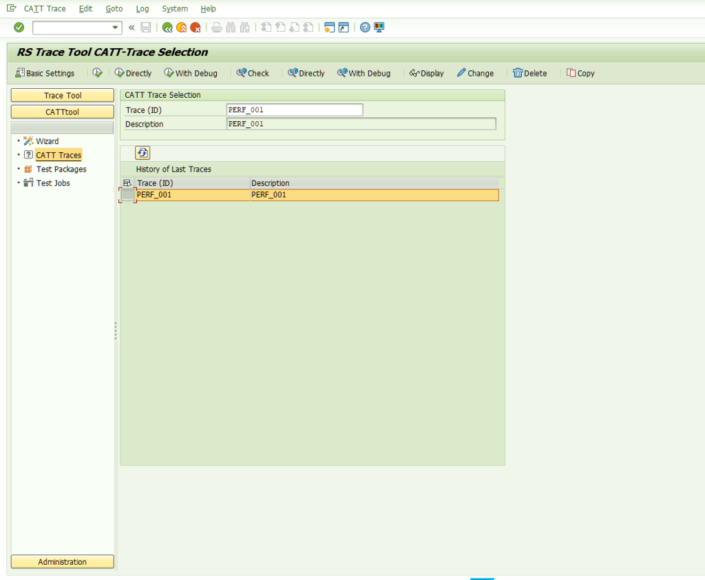 Go to RSTT and the imported CATT Trace, Test Package and Test JOB PERF_001 should appear.